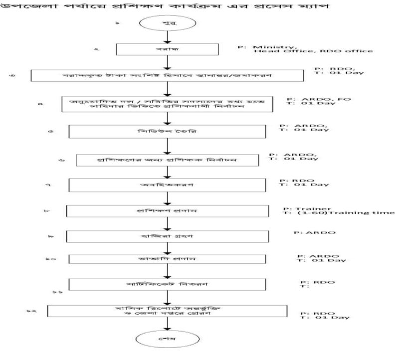 উপজেলা পর্যায়ে প্রশিক্ষণ কার্যক্রমের প্রসেস ম্যাপ: